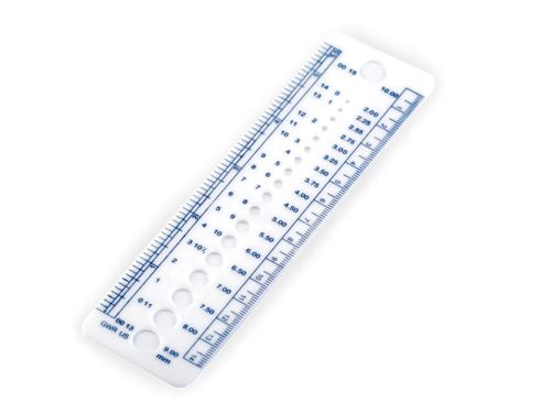 Miarka do drutów ma otwory z podaną wielkością w mm, GWR i US.