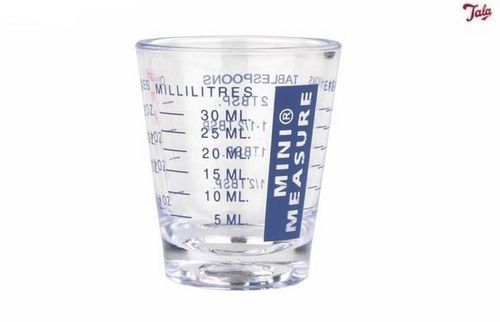 Miareczka w kształcie kieliszka sprawdzi się podczas przyrządzania drinków, odmierzania przypraw, proszku do pieczenia i niewielkich ilości innych składników.