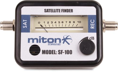 Miernik SF-100 MITON to niezwykle proste i wygodne w obsłudze urządzenie do ustawiania optymalnego poziomu sygnału odbieranego przez antenę satelitarną. Miernik został wyposażony we wskaźnik wychyłowy poziomu sygnału oraz sygnalizator o zmiennym natężeniu dźwięku, ułatwiający dokładne i szybkie ustawienie pozycji anteny. Miernik wpina się pomiędzy tuner satelitarny a konwerter.