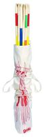 W zestawie Mikado znajduje się aż 25 ogromnych drewnianych szpiczasto zakończonych bierek, różniących się między sobą ilością i kolorem namalowanych na nich pasków, które określają wartość punktową poszczególnych bierek.