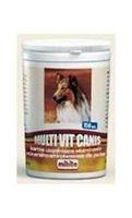 MULTI VIT CANISKarma uzupełniająca mineralna dla psów. Skład:fosforan dwuwapniowy, drożdże piwne, serwatka, węglan wapniowo-magnezowy, sacharoza, glikol propylenowy Składniki analityczne w 1 kg:wapń – 140 g, fosfor – 95 g, sód – 0,022 g, magnez – 8 g, lizyna – 3,2 g, metionina – 0,7 g, arginina – 2,5 g, tryptofan – 0,6 g Dodatki w 1 kg:Dodatki dietetyczne: witamina A (E 672) – 769000 j.m., witamina D3 (E 671) – 76900 j.m., witamina E – 3000 mg, witamina C – 9000 mg, witamina B1 – 150 mg, witamina B2 – 550 mg, witamina B6 – 7,5 mg, witamina B12 – 1500 mcg, witamina K3 – 250 mg, biotyna – 76000 mcg, niacynoamid – 2900 mg, pantotenian wapnia – 960 mg, żelazo (E 1) – 7000 mg, cynk (E 6) – 750 mg, miedź (E 4) – 1000 mg, mangan (E 5) – 650 mg, jod (E 2) – 130 mgPrzeciwutleniacze. Multi Vit Canis zawiera zestaw witamin, makro i mikroelementów oraz aminokwasów egzogennych odpowiednio zbilansowanych pod względem zapotrzebowania organizmu, wpływa na prawidłowy rozwój zwierząt i uzupełnia niedobory witaminowo – mineralne. Wskazania:Szczenięta, młodzież, psy dorosłe, suki szczenne i karmiące, reproduktory. Stosowanie: 0,65 g (1 tabletka) na 5 kg ciężaru ciała dziennie. W stanach wzmożonego zapotrzebowania (ciąża, laktacja, intensywny wzrost, praca, trening, żywienie niepełnowartościowymi karmami) 0,65 g (1 tabletka) na 2,5 kg ciężaru ciała dziennie lub według wskazań lekarza weterynarii.