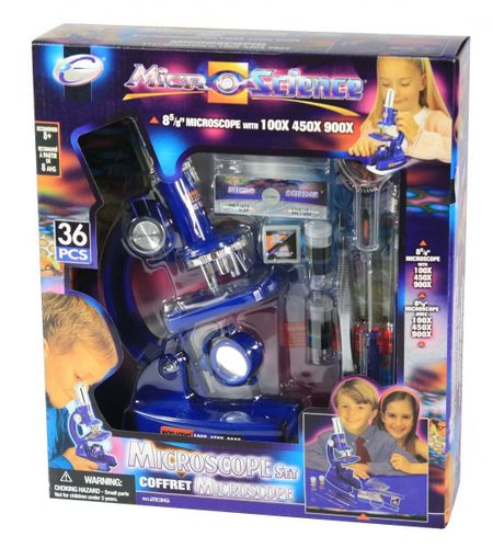 Profesjonalnie przygotowany mikroskop z możliwością bardzo dużego powiększenia - 100x, 450x, 900x pozwoli nawet najbardziej wymagającym młodym naukowcom poczuć się jak w prawdziwym laboratorium.