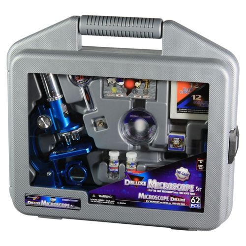 Mikroskop Delux zamknięty w praktycznej plastikowej walizce to bardzo dokładne urządzenie badawcze, idealne dla dorastających naukowców.