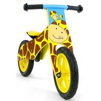 Rowerek Biegowy Duplo Żyrafa charakteryzuje się nowoczesnym wyglądem, posiada antypoślizgowe rączki, solidną ramę wykonaną z lekkiego drewna, łożyskowane koła z obręczami, opony rowerowe z bieżnikiem i wentylem oraz miękkie i wygodne siedzisko, którego wysokość można regulować.