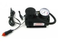 Mini kompresor 250 PSI + KOŃCÓWKI Zasilanie z zapalniczki samochodowej 12V Dane: Ciśnienie tłoczenia 2 Mpa (250 PSI) Idealny do pompowania kół samochodowych 3 metrowy przewód z wtykiem do gniazda 12V Wąż powietrzny o długości 46 cm z zaworem zamykającym 3 końcówki do pompowania np.materacy,piłek,opon itp.(w komplecie) Wskaźnik ciśnienia W KOMPLECIE:Kompresor z manometrem i przewodem, wtyczką do gniazda zapalniczki. Zestaw końcówek do pompowania materacy, piłek, kół lub pontonu