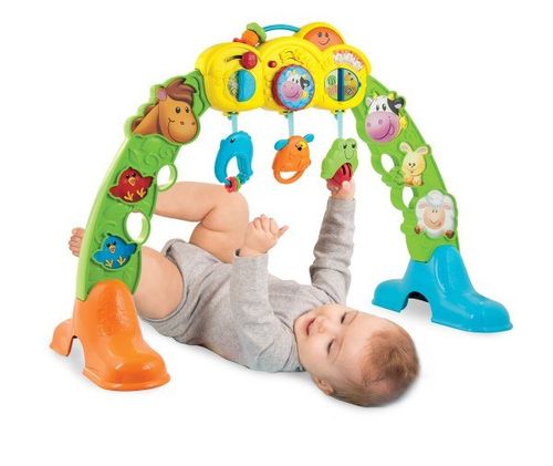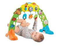 Po rozłożeniu zabawki leżące dziecko może bawić się Mini-Siłownią. Panel z melodyjkami można zamocować do łóżeczka. Grzechotki ze zwierzątkami łatwo odłączyć od zabawki i wziąć ze sobą na spacer.