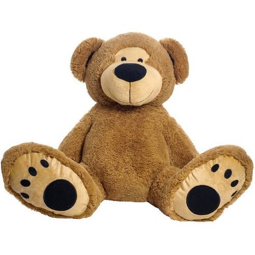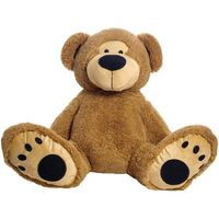 Miś wykonany z najwyższej jakości pluszu. Koloru brązowego. Miś ma bardzo duży czarny nosek i czarne łatki na łapkach.