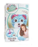 W zestawie znajdziemy wykonaną z miękkiego pluszu małą poduszeczkę w kształcie głowy misia, którą należy ozdobić, załączonymi do zestawu kolorowymi skrawkami materiałów.