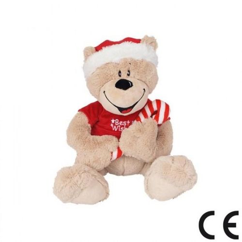 Ubrany w koszulkę z wydrukowanym napisem BEST WISHES.