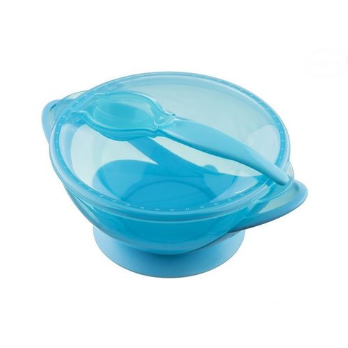 Miseczka na przyssawce z łyżeczką to idealny produkt do karmienia dziecka. Pokrywka szczelnie chroni pokarm, specjalna komora przeznaczona jest do przechowywania łyżeczki, dzięki czemu jej nie zgubimy oraz zachowamy ją w czystości. Gumowa przyssawka uniemożliwia przesuwanie się miseczki po stole chroniąc jednocześnie pokarm przed rozlaniem. Wykonana w całości z bezpiecznych materiałów przeznaczonych do kontaktu z żywnością, nie zawiera bisfenolu A (0% BPA).