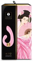 Luksusowy wibrator Miyo od Shunga w wyrafinowanym, eleganckim designie do jednoczesnego pieszczenia pochwy, strefy G i łechtaczki. Ergonomicznie idealnie zakrzywiona i wykonana z silikonu medycznego, jedwabiście miękka Miyo doskonale dopasowuje się do ciała i ruchów. Jego delikatne struktury intensywnie podkreślają podwójną stymulację. Ekskluzywny komfort rozpieszczania dla maksymalnej przyjemności!2 mocne, a zarazem ciche (40dB) silniki każdy oferują dyskretną i bardzo zróżnicowaną przyjemność z 10 trybami wibracji w 5 prędkościach. Silniki w stymulatorze łechtaczki i wale mogą być sterowane oddzielnie za pomocą przycisku na zmysłowym łuku centralnym podświetlanym diodami LED. Każdy tryb wibracji świeci się na inny kolor. Dzięki praktycznej blokadzie przycisków, Miyo jest idealnym towarzyszem podróży. Nie wahaj się używać go w wannie i pod prysznicem, ponieważ jest wodoodporny na całej powierzchni.Możliwość ładowania - kabel do ładowania USB w zestawie.W zestawie wysokiej jakości torba do przechowywania.Wszystko w pięknym opakowaniu - idealny prezent!18,5 cm x 9,5 cm x 3,8 cm.Waga 216 gSilikon, ABS.