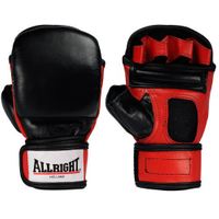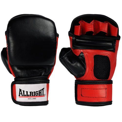 Rękawice z odkrytymi palcami, z zakrytą wewnętrzną częścią dłoni. Ukształtowane w sposób umożliwiający wygodny, pewny chwyt. Do MMA, Krav- magi i in. stylów walki. Wykonane z czarnej miękkiej skóry bawolej. Nadgarstek ściągany szerokim pasem, mocowanym na rzepy