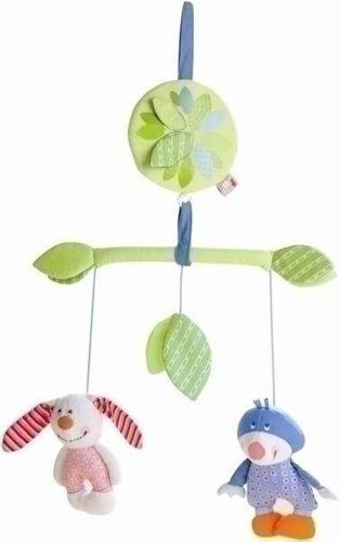 Znakomite mobile do łóżeczka dziecięcego. Wykonane z najwyższej jakości ekobawełny oraz poliestru, posiada pozytywkę. Postacie zwierząt są mocowane na magnesiki i można je w każdej chwili odczepić. Zabawka może służyć od dnia narodzin i przez długie miesiące rozweselać pobyt w łóżeczku. Do mobile polecamy pałąk mocujacy (patrz produkty powiązane).