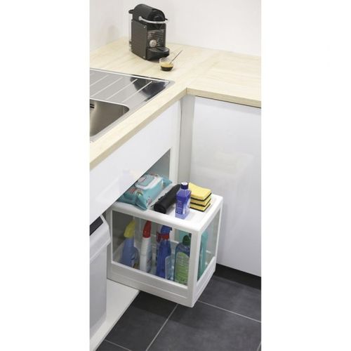 Uniwersalna i wielofunkcyjna półka na szynach. Idealnie nadaje się do kuchennej szafki pod zlew. Dwie listwy tzw. prowadnice należy przykręcić do podłoża szafki po których z łatwością będzie można przesuwać półkę. Z pewnością ułatwi zagospodarowanie niewykorzystanej przestrzeni w kuchennej szafce. Biały kolor oraz prosty wzór sprawią, że pasuje do większości wnętrz, dzięki swojej prostocie zajmuje mało miejsca.