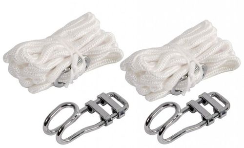 Kompletny zestaw do mocowania w hamaku. Zestaw składający się z dwóch haków stalowych z dwoma przewodami 3,8 m każdy. Posiada dwa solidnie wykonane stalowe haki. Maksymalne obciążenie wynosi 160kg.