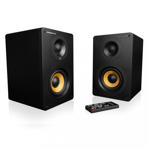 MODECOM ECLIPSE 60 ZESTAW GŁOŚNIKOWY 2.0MODECOM Eclipse 60Aktywny zestaw 2.0 z modułem Bluetooth to głośniki dla osób, które mają wymagające ucho i nie za dużo miejsca na rozbudowany sprzęt audio. Zestaw zaskakuje czystością dźwięków.Wzmacniacze klasy DCechą wyróżniającą wzmacniacze klasy D jest wysoka sprawność - tracą one bardzo mało energii w postaci ciepła. Wzmacniacze klasy D przy pracy z mocami zbliżonymi do swojej mocy maksymalnej osiągają sprawność powyżej 90%. Wysoka sprawność pozwala na zmniejszenie systemu chłodzenia i w efekcie na miniaturyzację wzmacniaczy pracujących w klasie D.Dbając o dźwięk nie zapomnieliśmy o wyglądzieMasywne głośniki o rozmiarach 357 x 240 x 220 mm idealnie wkomponują się zarówno w nowoczesny jak i klasyczny wystrój wnętrza. Głośniki wykonane z czarnej płyty MDF oraz żółtymi dolnymi membranami są wyśmienitym dopełnieniem idealnego dźwięku jaki z MODECOM Eclipse 60 wydobywa się tuż po ich podłączeniu.Wygoda użytkowania idzie w parze z jakością dźwiękuGłośniki MODECOM Eclipse 60 posiadają wbudowany wzmacniacz (2 x 30 W) a ich podłączenie do prądu i źródła dźwięku jest banalnie proste. Zestaw można podłączyć m.in. poprzez dołączone do zestawu: przewód optyczny i kabel z mini-jack, bądź bezprzewodowo poprzez Bluetooth 4.0 z Apt-X™ lub NFC. Głośnikami sterować można dedykowanym, bezprzewodowym pilotem lub z poziomu wbudowanego panelu w górnej części jednej z dwóch kolumn. Regulować można sterowanie tonów niskich i wysokich, głośność a także wybrać preferowany tryb podłączenia.Jakość dźwięku na najwyższym poziomieGłośniki charakteryzują się pełnym szczegółów dźwiękiem którego słuchać można z przyjemnością przez wiele godzin. Dźwięk z MODECOM Eclipse jest pełen szczegółów i jednocześnie na tyle ocieplony że przyjemne słucha się go przez wiele godzin. Świetna jakość dźwięku idzie w parze z bardzo dobrą jakością wykonania i wysoką mocą maksymalną.Do wszystkiego znaczy do… filmów i gierGłośniki są na tyle uniwersalne i dobre że nadają się zarówno do podłączenia pod telewizor pełniąc rolę kina multimedialnego jak i do komputera, dostarczając wysokiej jakości dźwięk podczas multimedialnej rozrywki np. podczas gier.EAN: 5901885247519Gwarancja: rękojmia 24 miesiąceKod dostawcy: G-F-HF60-ECLIPSE60Rodzaj: KomputeroweSystem: 2.0Przeznaczenie: MuzykaStacja dokująca: NieRegulatory: PilotMoc głośników (sumaryczna): 60 WPasmo przenoszenia (min.): 35 HzPasmo przenoszenia (maks.): 22 kHzKomunikacja bezprzewodowa: BluetoothZłącza: S/PDIFZasilanie: SiecioweAkcesoria w zestawie: Pilot zdalnego sterowaniaKolor: CzarnyWymiary: Wymiary głośnika satelity: 256 x 200 x 160 mmWaga: 3 kgPozostałe parametry: - Długość przewodu zasilającego 150 cm- Kable: 245 cm