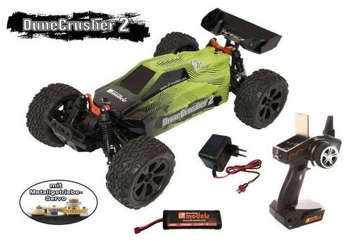 Model Dune Crusher 2 Nadajnik 2,4 GHz Akumulator NiMH 1800 mAh 7,2 V Silnik elektryczny 550s Regulator Metalowe serwo | Skala: 1:10 Napęd: 4WD szczotkowy Długość: 430 mm Szerokość: 270 mm Wysokość: 150 mm Rozstaw osi: 287 mm Opony: 110x50 mm |