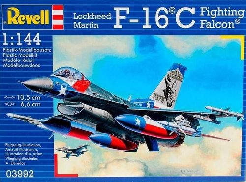 Zestaw modelarski z akcesoriami ( 3 podstawowe farbki, pędzelek, klej ). Lockheed Martin F-16 - jest uważany za jeden z najbardziej wszechstronnych samolotów nowoczesnych myśliwców. Plastikowy model do sklejania Revell (REV-63992 ) Długość: 10,5 cm Rozpiętość skrzydeł: 6,6 cm Skala: 1:144 Ilość elementów: 70