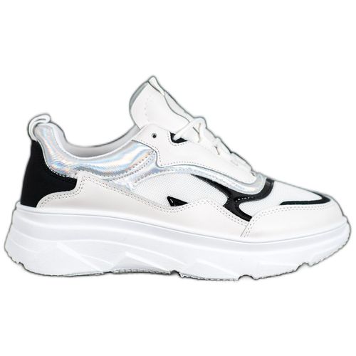 Białe sneakersy z czarnymi elementami SHELOVET to świetna propozycja dla kobiet, które preferują styl sportowy. Buty te znakomicie sprawdzą się nie tylko w czasie aktywności fizycznej, ale też na co dzień, dlatego jest to uniwersalny wybór dla każdej z pań. Sneakersy te posiadają 4,5-centymetrową platformę oraz sznurowanie.