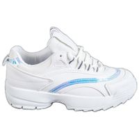 Sneakersy damskie to wygodne obuwie w sportowym stylu, które będzie doskonałym uzupełnieniem wielu różnych stylizacji na co dzień. Buty te są w białym kolorze z metalicznymi niebieskimi wstawkami, mają wzmocnione czuby i pięty oraz platformy o wysokości 4 cm, które stanowią doskonałą izolację od podłoża.