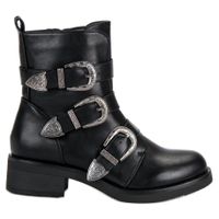 Czarne botki ozdobione zwracającymi uwagę klamrami pozwolą wyróżnić się z tłumu. Staną się elementem rozpoznawczym i będą dodawać stylizacjom charakteru. Zapewnią również poczucie maksymalnej wygody: wyprodukowane z trwałego, odpornego na zniszczenia materiału długo zachowują ładny wygląd, nie przepuszczają zimna ani wilgoci. Buty są stylowe i komfortowe.
