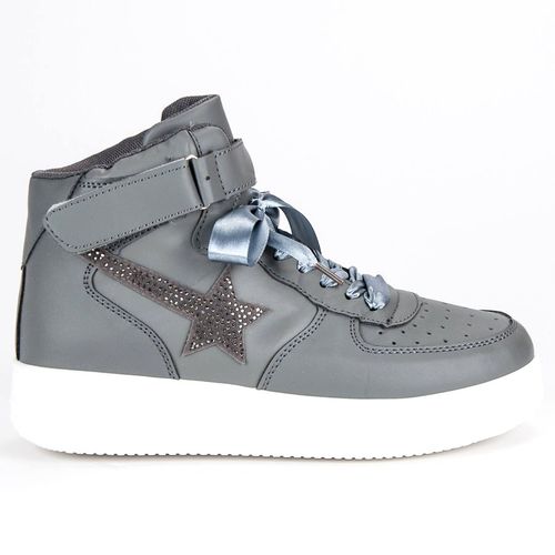 Szare buty sportowe ze skóry ekologicznej zapewniają maksimum komfortu, a jednocześnie stanowią efektowny detal całej stylizacji. Wyróżnia je nie tylko wyjątkowy krój, ale także stylowe zdobienia – na przykład błyszcząca aplikacja. Buty mają mocną, elastyczną, nie blokującą ruchów podeszwę, a także wyprofilowaną wkładkę.