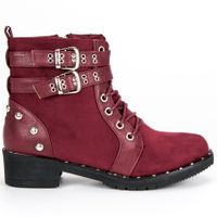 Czerwono - bordowe botki firmy Clowse to buty dla kobiet lubiących zadziorny, rockowy styl. Ozdobne dżety oraz oryginalne sprzączki nadadzą każdej codziennej stylizacji mocnego charakteru, dodatkowo podkreślonego wyróżniającym się z tłumu kolorem. Wykonane z ekologicznej skóry oraz ekologicznego zamszu, idealne na chłodne dni sezonu jesienno - zimowego.