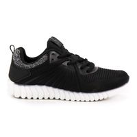 Czarne buty damskie to idealne rozwiązanie na siłownię lub trening fitness. Obuwie zostało wykonane z przepuszczalnego materiału tekstylnego, posiada syntetyczną podeszwę, która zapobiega ślizganiu się. Buty prezentują się stylowo, a biała podeszwa w zestawieniu z czarnym materiałem wygląda wyjątkowo efektownie.