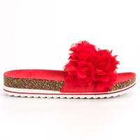 Niezwykle wyrazisty czerwony kolor to zdecydowany atut tych prześlicznych klapków. Mięsiste kwiatki stanowiące ozdobę paska podtrzymującego stopę nadają im wyjątkowego charakteru. Buty wspaniale sprawdzą się do wielu letnich stylizacji. Wykonane są z wysokiej jakości skóry ekologicznej i posiadają solidną platformę 3,5 cm.