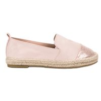 Wykonane z przyjemnej w dotyku tkaniny w kolorze zgaszonego różu espadryle prezentują się dobrze zarówno w stylizacjach wyjściowych, jak i bardziej domowych. Podeszwa ozdobiona dekoracją z jutowego sznurka dobrze współgra z cholewką, która na wierzchu ozdobiona jest ciekawą aplikacją. Buty wsuwane, bardzo wygodne.