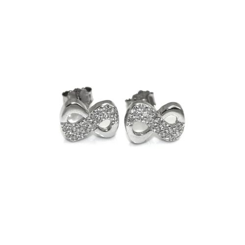 Modne kolczyki Infinity nieskończoność w całości wykonane z rodowanego srebra pr. 925.