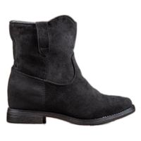 Kowbojki damskie wykonane z estetycznej skóry ekologicznej o zamszowym wykończeniu w uniwersalnym czarnym kolorze mają cholewki sięgające za kostkę i będą świetnym dodatkiem do wielu kreacji na co dzień. Buty te mają płaski obcas o wysokości 2,5 cm zapewniający wygodę nawet podczas dłuższego chodzenia.