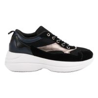 Czarne Modne Obuwie Na Platformie to buty idealne dla każdej kobiety, która ceni elegancję w nowoczesnym wydaniu. Buty zostały wykonane z najwyższej jakości materiałów, z dbałością o szczegóły. Posiadają białą platformę, której wyrazu nadaje czerń w różnych odcieniach, podkreślona złotymi wstawkami. Buty te świetnie podkreślą i nadadzą wyrazu każdej sportowej, codziennej stylizacji.