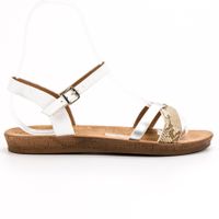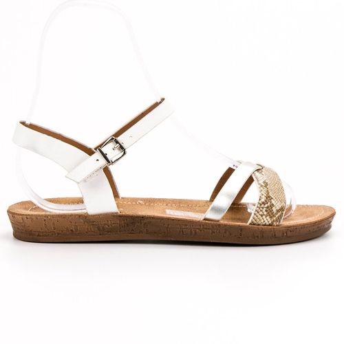 Białe sandałki na płaskiej podeszwie to idealny wybór na lato, który doskonale wpisze się w każdą stylizację. Płaska podeszwa zapewnia maksimum wygody. Delikatny, nienarzucający się wzorek imitujący skórę węża dodaje tej parze charakteru. Zapięcie na sprzączkę zapewnia stabilność. Buty ponadczasowe i komfortowe.