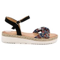 Latem pragniemy wyglądać modnie, kobieco i romantycznie. Te wyjątkowe sandały espadryle doskonale spełnią te oczekiwania. Stanowią ciekawy, barwny dodatek do stylizacji. Cieniutkie paseczki na przodzie łączą się tworząc zabawną plątaninę. Buty są komfortowe, a grubsza platforma fantastycznie amortyzuje każdy krok.
