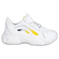Modne sneakersy damskie SHELOVET to buty na 5-centymetrowej platformie. Biała cholewka urozmaicona została wstawką w kolorze żółtym, dzięki czemu obuwie to nabrało charakteru. Solidna, gumowa podeszwa z bieżnikiem zapewnia bezpieczeństwo w czasie codziennego użytkowania, a sznurowanie ułatwia dopasowanie butów do stopy.
