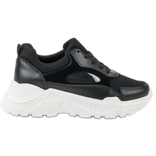 Czarne sneakersy damskie na grubej podeszwie w białym kolorze. Buty są bardzo lekkie, dzięki czemu są wygodne i zapewniają komfort podczas chodzenia. Rewelacyjnie wyglądają na stopie i stanowią stylowy dodatek do codziennych stylizacji casualowych i sportowych. Ich ciekawy design sprawia, że stroje nabierają wyjątkowego charakteru.