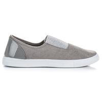 Modna propozycja od firmy McKeylor - trampki w szarym kolorze. Damskie buty wykonane z lakierowanej skóry ekologicznej oraz zamszu. Wsuwane, bez obcasów, w sportowym stylu, idealne obuwie na co dzień. Cechą tego modelu jest gumowa podeszwa z bieżnikiem, natomiast wkładka została wykonana z tekstylnych materiałów.