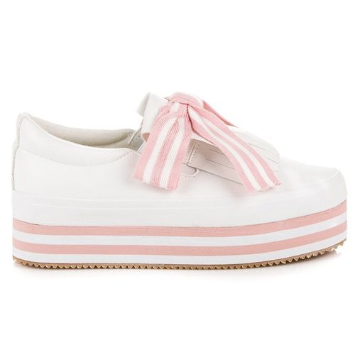 Niezwykłe biało-różowe trampki to dowód na to, że sportowe obuwie może być też eleganckie i stanowić świetną alternatywę dla szpilek. Buty na niebotycznej platformie dodają centymetrów i fantastycznie wydłużają nogi, a ich delikatna kolorystyka i piękne wiązanie podkreślają kobiecy charakter każdej stylizacji.