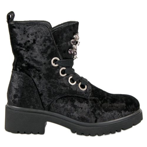 Welurowe botki Kylie w kolorze czerni to modne i stylowe rozwiązanie dla każdej kobiety, która docenia klasyczne stylizacje. Buty posiadają zdobienia z kryształków, a ich fason jest wyjątkowo ciekawy i przyciąga wzrok. Obuwie posiada ocieplenie z futerka, dzięki któremu nosi się je wygodnie i komfortowo.