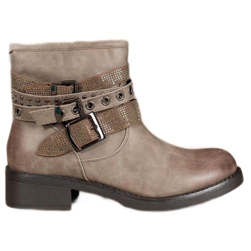 Wygodne i bardzo modne workery damskie w kolorze brązowym. Buty wyprodukowano przy użyciu zamszowej skóry ekologicznej najwyższej jakości. Odpowiednio wyprofilowana podeszwa zapewnia wygodę oraz stabilność w czasie chodzenia. Ozdobne klamry umieszczone na cholewce sprawiają, że obuwie nabiera bardziej rockowego charakteru.