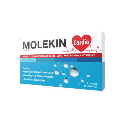 Molekin Cardio zawiera składniki wspierające pracę serca i układ krążenia. Magnez, witamina D3 oraz potas uczestniczą w prawidłowym funkcjonowaniu mięśni, w tym mięśnia sercowego.