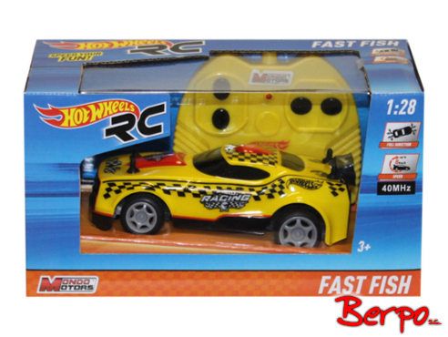 Rewelacyjne Sterowane Auto Hot Wheels Fast Fish. Wystartuj w wyścigu o puchar i wraz wyścigówką z Hot Wheels pokaż, że jesteś najlepszym kierowcą wszechczasów. Każdy chłopiec chciałby zobaczyć, a najlepiej poprowadzić to śliczne autko. Teraz możesz spełnić to dziecięce marzenie. Oś w tym cudzie jest skrętna, dzięki czemu wszelkie brawurowe manewry są dużo łatwiejsze do wykonania. Samochodem sterujemy za pomocą dołączonego pilota. Wyścigówka jeździ do przodu, do tyłu i skręca w prawo i lewo. Osiąga maksymalną prędkość do 8 km/h. Przeżyj ten emocjonujący wyścig i zabaw się razem z przyjaciółmi. To prawdziwie rajdowy samochodzik. Prowadzenie go to sama radość i czysta przyjemność. Karoseria wykonana jest ze specjalnego odpornego na pękanie materiału.