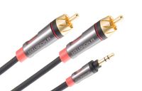 kabel jack 3.5mm – 2xRCA do podłączenia iPada, iPhona, iPada lub innych urządzeń z wyjściem audio jack 3.5mm do Twojego zestawu stereo wtyki RCA wykonane w technologii Split-Tip™ oraz 8-Cut Turbine® zapewniają ścisłe przyleganie do gniazda i tym samym lepsze przesyłanie sygnału wtyki pokryte 24K złotem dla zapewnienia maksymalnej powierzchni kontaktu z gniazdem przewody o symetrycznym uzwojeniu dla zapewniają naturalny i precyzyjny dźwięk technologia DoubleHelix™ obniża zakłocenia elektromagnetyczne dzieki ściśle uzwojonym podwójnym wiązkom przewodów płaszcz ochronny Duraflex™ zapewnia wytrzymałość i najwyższy poziom elastyczności kabla