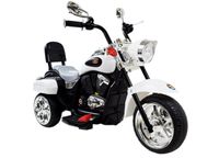 MOTOR CHOPPER 1501 zasilane na 6 V z oparciem - tak aby młody kierowca nie spadł do tyłu zachwyci nie jednego przyszłego kierowcę. Dzięki zastosowanym najmocniejszym silnikom 25 W, motor z pewności służył będzie na długie spacery.