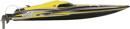 Model łodzi Alpha to idealne rozwiązanie dla każdego, kto jest spragniony prędkości i adrenaliny na wodzie. Prezentowana motorówka posiada wysokiej jakości kadłub, który został wyposażony w mocny silnik bezszczotkowy z podprowadzonym i zainstalowanym chłodzeniem wodnym, co w połączeniu z odpowiednimi pakietami, pozwala na rozpędzenie motorówki nawet do 80km/h.