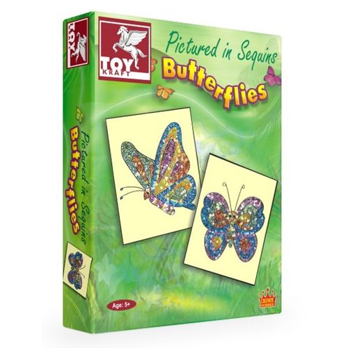 Używając mieniących cekinów możesz stworzyć barwne obrazki. Do zestawu dołączone są arkusze przedstawiające różne gatunki motyli. Motyle przedstawione są w locie.