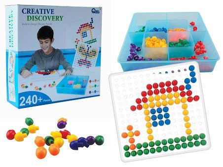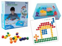 Zestaw zawiera 240 kolorowych elementów, które można łączyć ze sobą na dołączonych specjalnych podstawkach. Zabawka uczy kreatywnego myślenia, rozwija wyobraźnię dziecka.