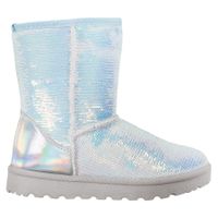 Mukluki z cekinami Shelovet w kolorze białym to niebanalne pod względem stylistyki obuwie, które dodatkowo zapewnia bardzo dobrą ochronę przed przenikliwym zimnem. Buty powstały z połączenia wysokiej jakości imitacji skóry oraz materiałów tekstylnych. Podeszwa o grubości 3 cm dodatkowo chroni stopy przed zimnem.