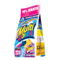Proszek do prania Multicolor to produkt uniwersalny i skuteczny. Sprawdzi się we wszystkich rodzajach prania, także w praniu ręcznym. Nadaje się zarówno do ubrań kolorowych, jak i białych. Uniwersalny produkt do prania: Proszek do prania Multicolor to produkt uniwersalny. Sprawdzi się w praniu we wszystkich rodzajach pralek w pełnym zakresie temperatur oraz w praniu ręcznym. Jego formuła pozwala na skuteczną pielęgnację zarówno ubrań białych, jak i kolorowych. Wyjątkowo wydajny: Proszek do prania Multicolor został stworzony z myślą nie tylko o wygodzie konsumenta, ale i ochronie środowiska naturalnego. Jego niezwykła wydajność sprawia, że nawet niewielka ilość pozwoli wykonać skuteczne pranie. Dzięki temu mniej zanieczyszczeń trafi do środowiska naturalnego. Proszek do prania Multicolor to przemyślany zakup. Liczby mówią same za siebie – 10 kg produktu starcza nawet na 133 prania. Opakowania aż w 7 wariantach – dopasowane do potrzeb klienta: Często proszki do prania dostępne są tylko w dwóch rozmiarach. Tak małe zróżnicowanie uniemożliwia dobranie opakowania zgodnie z potrzebami klienta. Właśnie dlatego proszek do prania Multicolor dostępny jest aż w 7 wariantach opakowania. Przy dużym zużyciu doskonale sprawdzą się opakowania 9 kg lub 10 kg zaś przy małym – opakowanie 400 g lub 600 g. Dla większej wygody najpopularniejszy wariant 5 kg dostępny jest także w praktycznym pudełku, zaś w podróży niezastąpione okażą się saszetki zawierające 200 gramów proszku Multicolor. Proszek do prania Multicolor – właściwości: - uniwersalny i skuteczny, - wydajny – 10 kg produktu starcza aż na 133 prania, - dostępny w 7 wielkościach, - do prania białego i kolorowego, - nadaje się do prania ręcznego, - pielęgnuje kolor na dłużej.